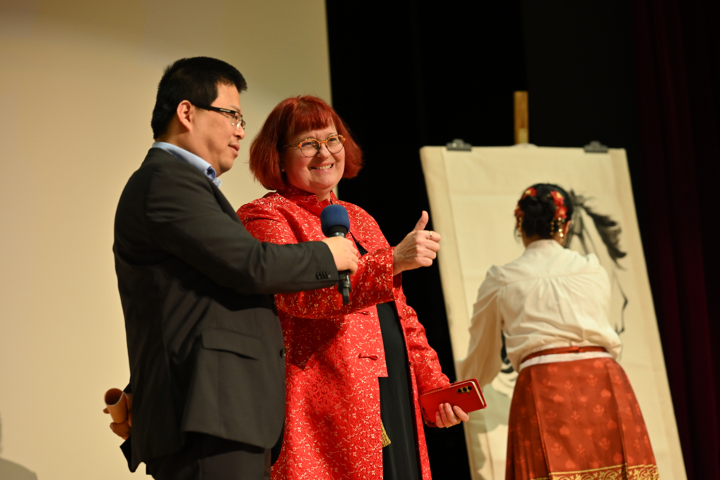 Kinder der Chinesischen Schule Bodensee begeisterten mit einem fröhlichen Tanz in traditionellen Hanfu-Kostümen, während Frau Xie Jing mit einer Gu-Zheng-Darbietung den Zauber klassischer chinesischer Musik auf die Bühne brachte. Im Ausstellungsbereich konnten Besucher Kalligrafie, chinesische Malerei von Herrn Long Mi, Schach, Bücher und kreative Handwerkskunst erleben. Eine Tee- und Snackecke, liebevoll von ehrenamtlichen Mitgliedern vorbereitet, sorgte für eine warme und herzliche Atmosphäre.