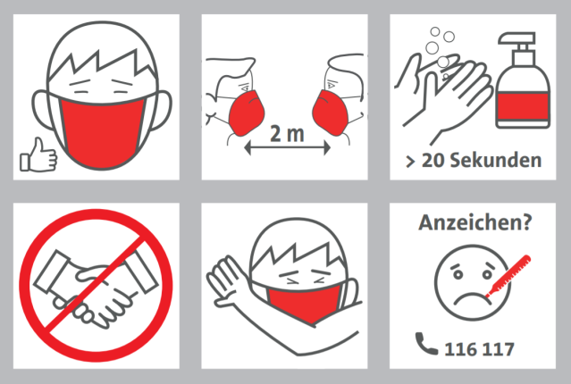 * AHA是Abstand halten, Hygiene beachten und Alltagsmaske (Mund-Nasen-Bedeckung) tragen的缩写。